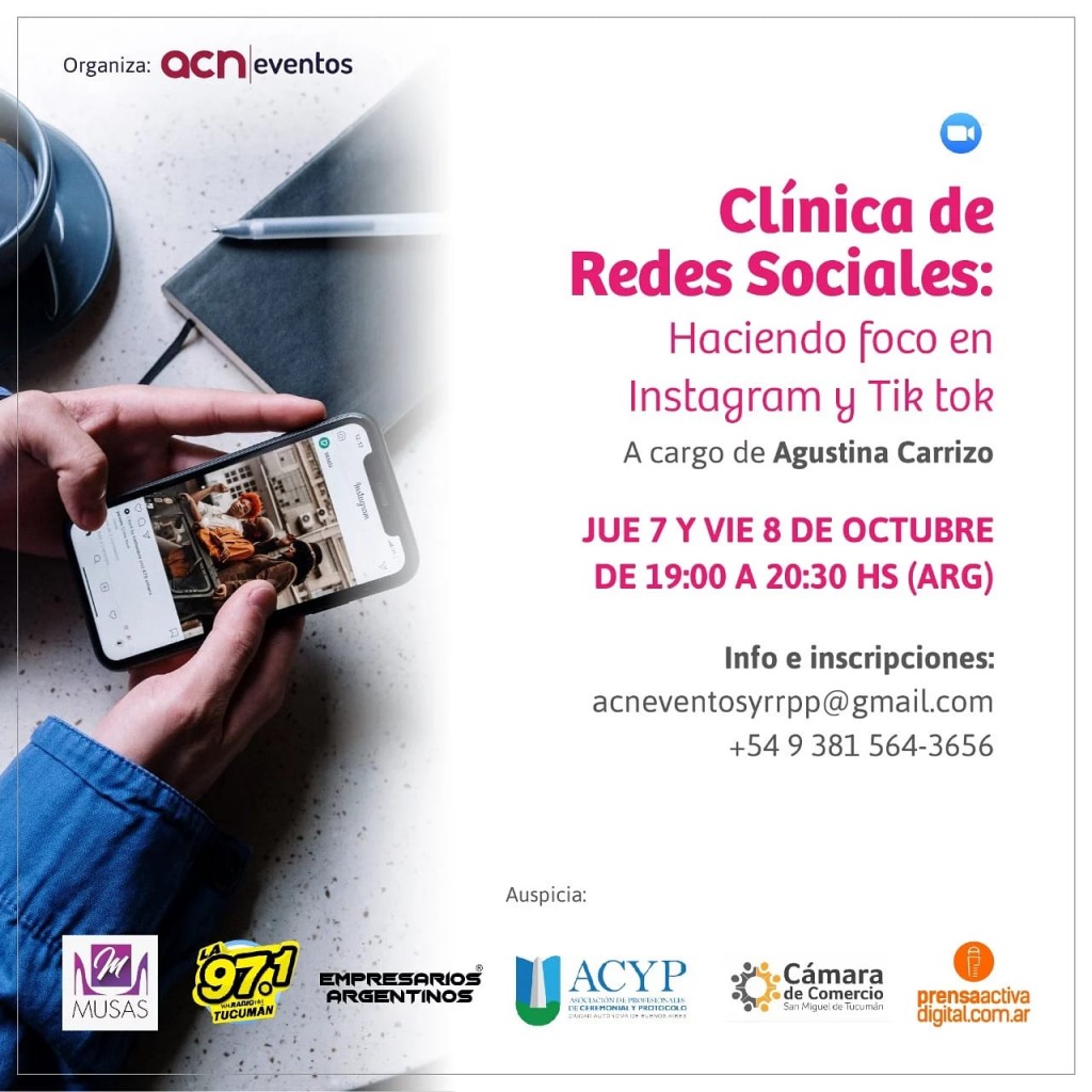 Carolina Negrete de ACN eventos, lo afirmó en la 97.1 Tucumán, al hablar sobre la próxima Clínica de Redes Sociales que se dictará el 7 y 8 de octubre