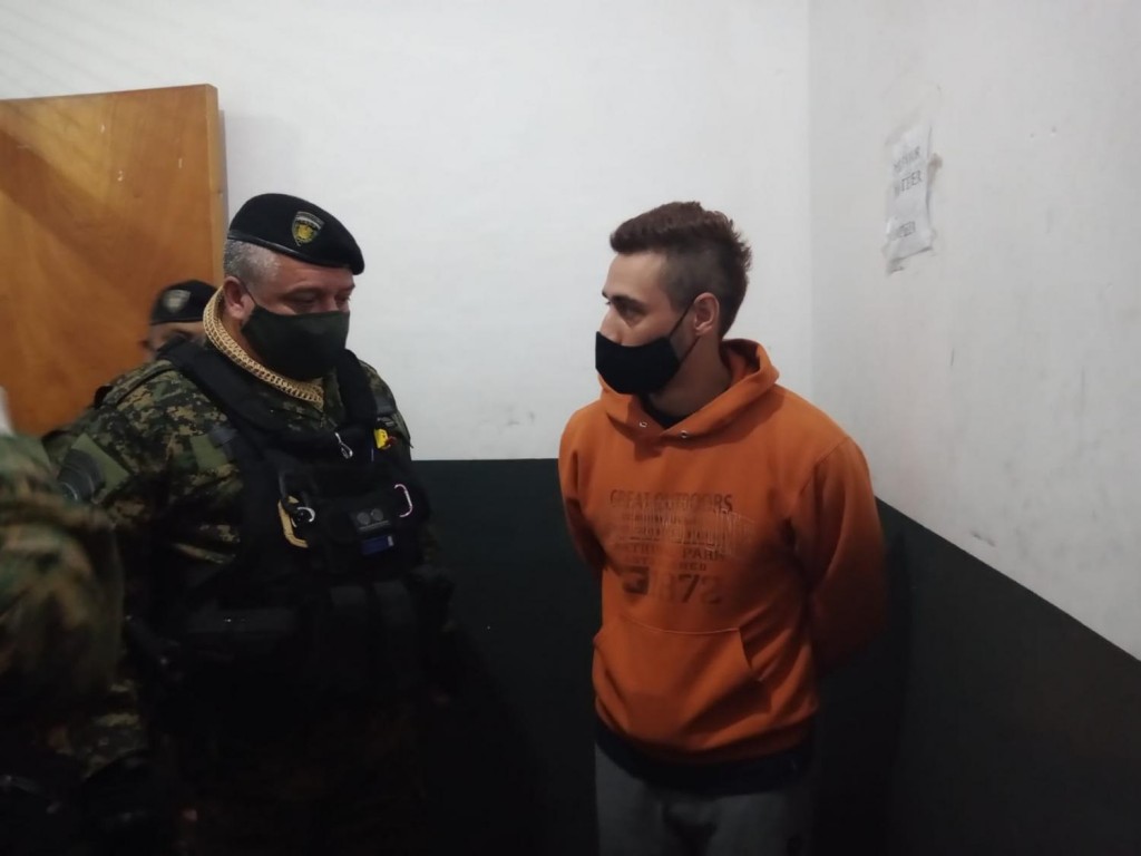 El director General de Investigaciones de la Policía, Jorge Dib, y el jefe de la División Homicidios, Diego Bernachi, encabezaron la comitiva policial que trasladó al prófugo recapturado de 36 años, junto al coordinador general del Equipo Científico de Investigaciones Fiscales (ECIF) del Ministerio Público Fiscal (MPF), Eugenio Agüero Gamboa.