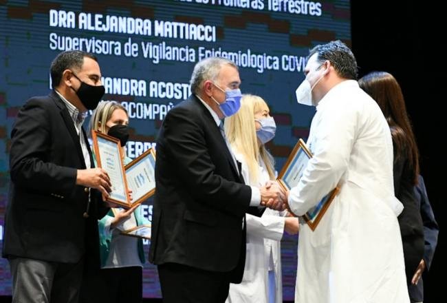 El gobernador Osvaldo Jaldo hizo entrega de la distinción. Además, el IDEP hizo el reconocimiento al personal de Salud que trabajó durante la pandemia