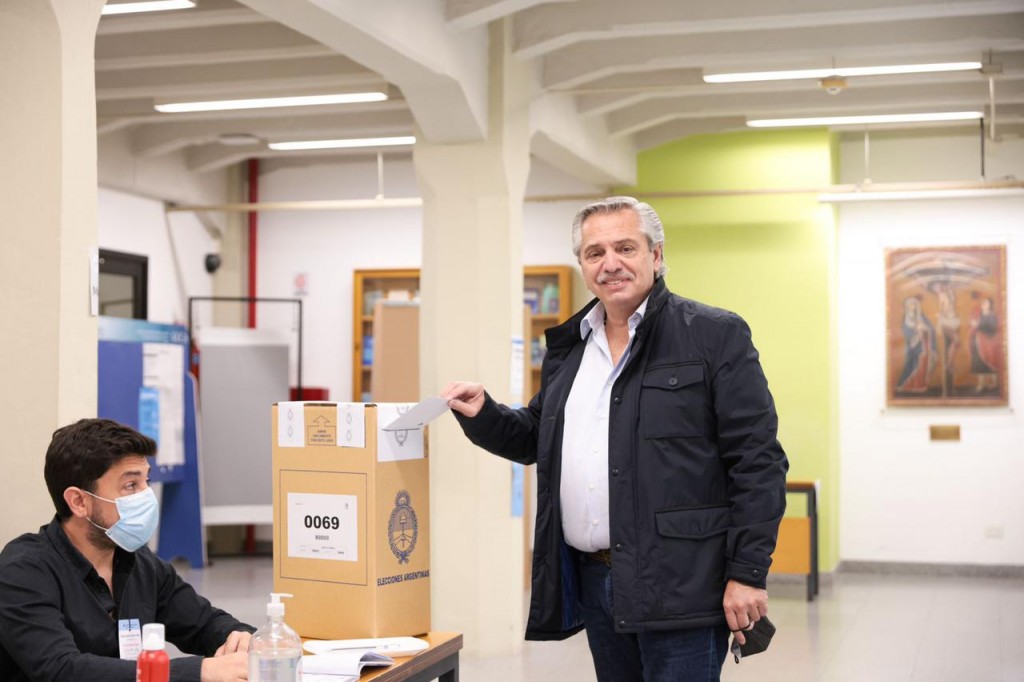 El Jefe de Estado concurrió a votar acompañado por la primera dama Fabiola Yañez, en la sede de la UCA ubicada en avenida Alicia Moreau de Justo 1.400 de la ciudad de Buenos Aires, al igual que lo hizo en las primarias abiertas, simultáneas y obligatorias (PASO) del 12 de setiembre.