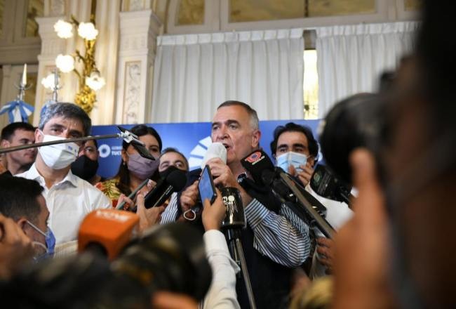 El gobernador, Osvaldo Jaldo, se refirió esta mañana, en una rueda de prensa en Casa de Gobierno, al resultado de las elecciones generales de medio término celebradas este domingo, previamente a visitar obras en el área de la salud