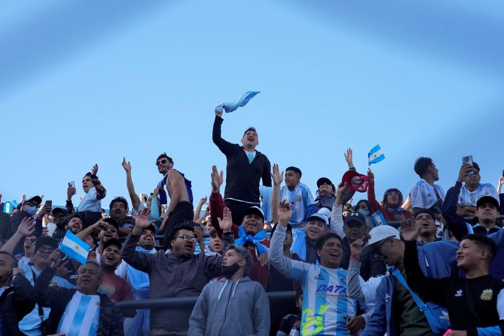 Un par de amigos cordobeses pinchas unos choris en compañía de un dúo de salteños. Se conocieron en la Copa América de Brasil 2019 y desde allí planean juntos cada viaje siguiendo a la Argentina de Lionel Scaloni que capitanea Lionel Messi. La imagen, se replicó en varios puntos de la ciudad. Y de allí, al Estadio del Bicentenario, en donde el aliento estuvo desde varias horas antes de que la pelota empezara a rodar.