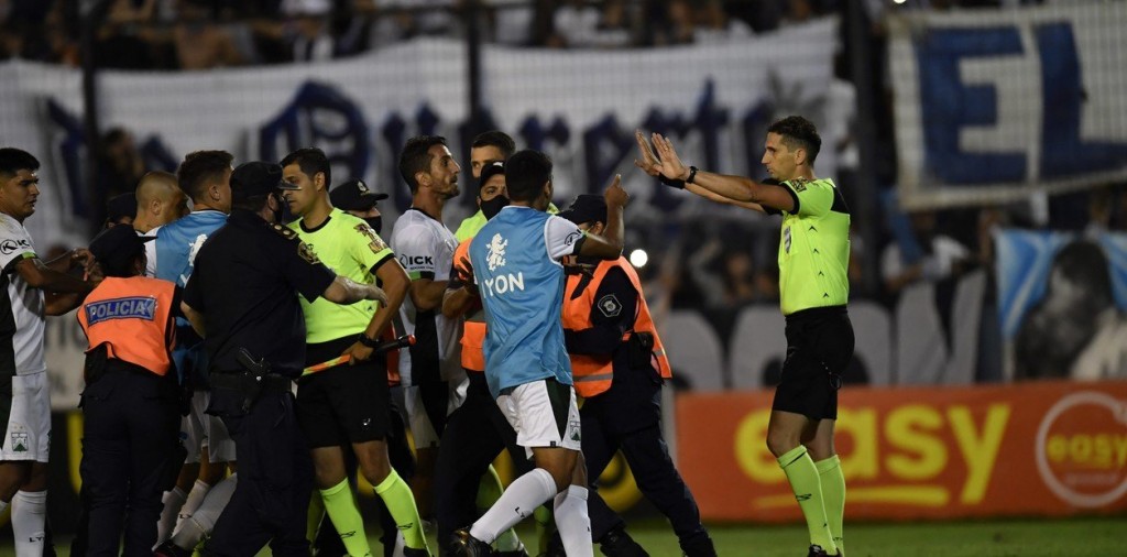 Lamolina llegó a sacar la tarjeta roja, pero nadie entendió en medio del tumulto a quién expulsó. Después de nueve minutos, el juez pudo dirigirse al vestuario, escoltado por varios efectivos, algunos con escudos protectores.