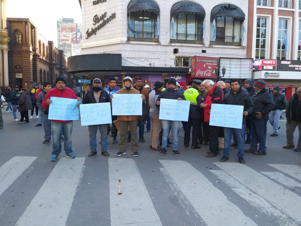 Un grupo de trabajadores del ingenio San Juan realizó esta mañana una protesta en plaza Independencia para solicitar al gobierno que solucione el conflicto con Gasnor.