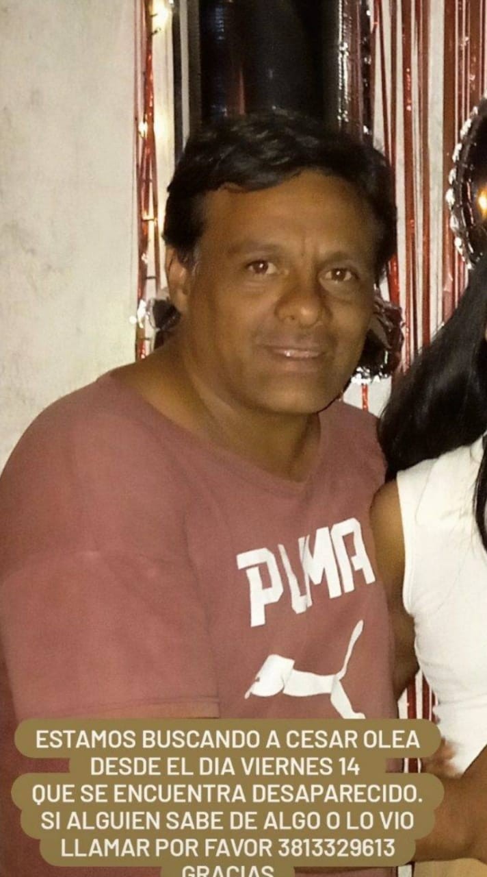 “Estamos buscando a César Olea que desde el viernes 14 se encuentra desaparecido”, detallaron familiares y dejaron el contacto telefónico 3813329613.