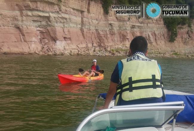 La policía Lacustre rescató durante la siesta a un adolescente de 16 años que practicaba kayak y quedó en medio de la tormenta en la zona conocida como “Bahia 3”, a dos kilómetros del embarcadero del dique El Cadillal.