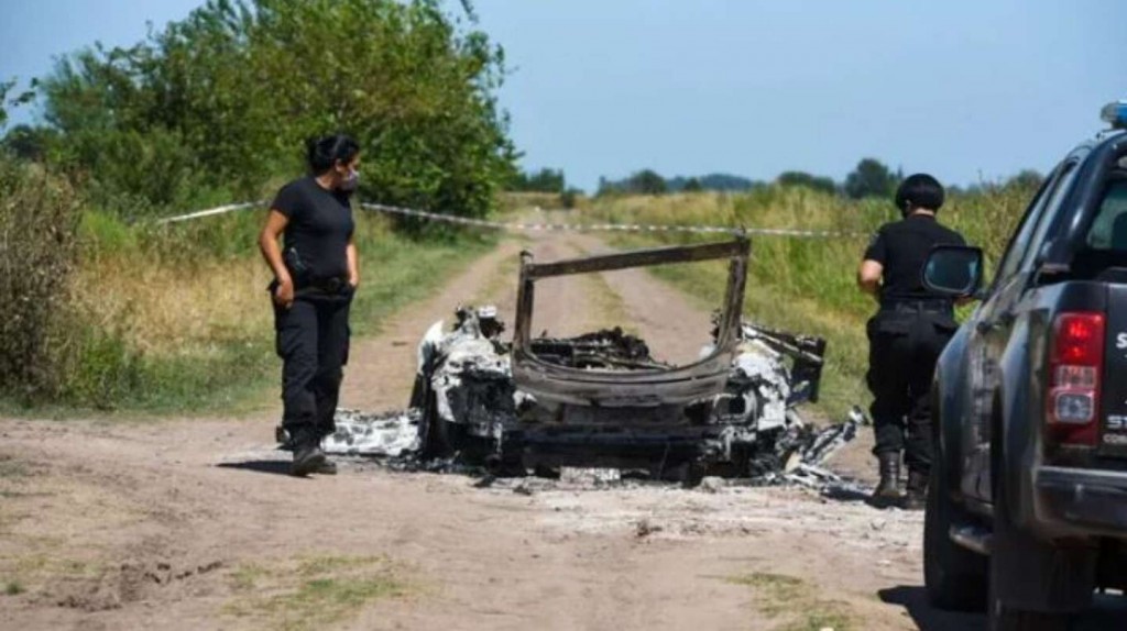 Luego de dejar a los heridos, ambos vehículos se retiran del lugar. Pocas horas más tarde, la policía encontró el auto en cercanías de calle Urquiza y un camino rural de Ibarlucea incendiado y con un cuerpo calcinado en su interior. La principal sospecha es que el cadáver sería de la mujer. Por el momento, resulta imposible de identificar ya que estaba completamente carbonizado.