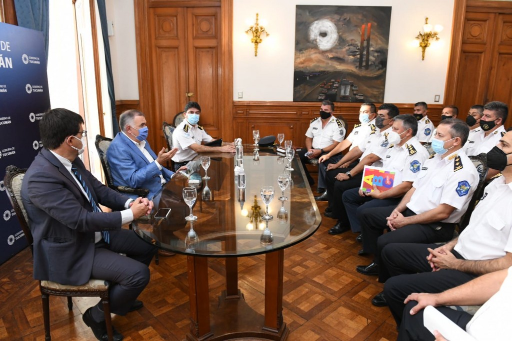 El gobernador, Osvaldo Jaldo, recibió esta mañana en Casa de Gobierno al ministro de Seguridad, Eugenio Agüero Gamboa; al subjefe de Policía, José Rolando Gómez; y a la plana mayor de la Policía de Tucumán para realizar un balance sobre los operativos de seguridad que se desarrollaron en el primer mes del año.