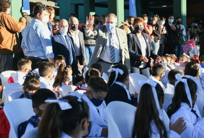 Además de contar con la presencia de las familias, docentes, directoras y supervisoras, están presentes la secretaria general de la Gobernación, Silvia Pérez; los ministros Juan Pablo Lichtmajer (Educación), Eugenio Agüero Gamboa (Seguridad), Gabriel Yedlin (Desarrollo Social), Álvaro Simón Padrós (Desarrollo Productivo), Luis Medina Ruiz (Salud Pública), Miguel Acevedo (Interior); el fiscal de Estado, Federico Nazur; la diputada nacional, Rossana Chahla; y el intendente de Alderetes, Aldo Salomón.