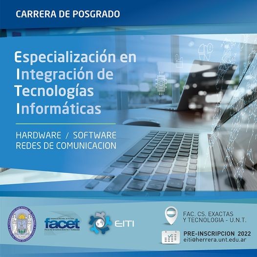 El Posgrado en "Especialización en Integración de Tecnologías Informáticas" (EITI), comenzará en marzo de 2022. La reunión informativa será el 9 de marzo a las 18:30 hs. en el Laboratorio de Redes de Computadoras (Block 1 - 3º piso).