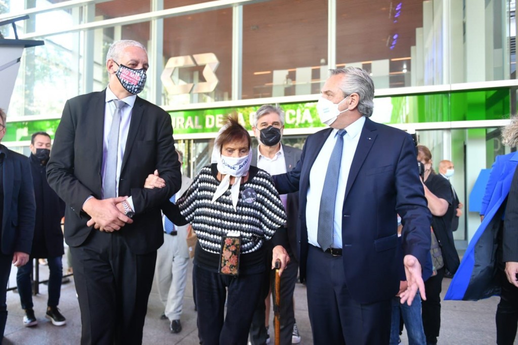 En el escenario, junto a Fernández, Filmus y Pietragalla Corti, estuvieron la titular de Familiares de Desaparecidos y Detenidos, Angela “Lita” Paolin de Boitano; la representante de Madres de Plaza de Mayo-Línea Fundadora, Taty Almeida y la presidenta del CONICET, Ana Franchi.