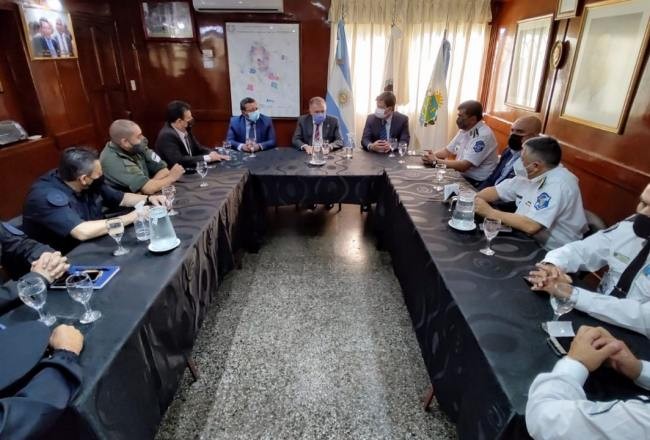 Allí estuvieron el jefe de Policía, Julio Fernández; el sub jefe Sergio Sobrecasas, el jefe regional Este, Fabio Gerreyrade; la Policía Federal comisario Domínguez, Gendarmería Comandante Flores, de la Policía de Seguridad Aeroportuaria (PSA), el inspector Montoya; el director de seguridad del municipio, Álvaro Bustos y el secretario de seguridad del municipio, Marcelo Moreno.