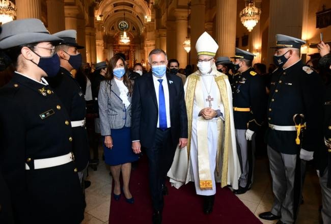 El gobernador, Osvaldo Jaldo, participó esta mañana del Solemne Tedeum por los 212 años de la Revolución de Mayo, que estuvo presidido por el obispo auxiliar de Tucumán, monseñor Roberto Ferrari