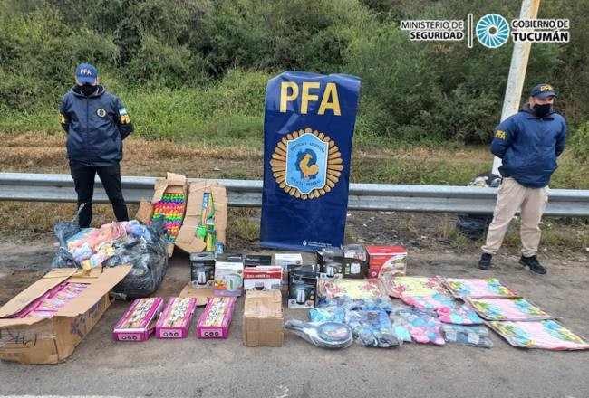 El personal policial junto con fuerzas federales con asiento en la provincia, procedieron a controlar una camioneta. Al momento de ser revisada en su interior, se observó una gran cantidad de mercadería, entre ellos juguetes y textiles, entre otros elementos. Al solicitarle a los ocupantes del vehículo la documentación correspondiente, adujeron que carecer de comprobantes que avalen lo transportado.