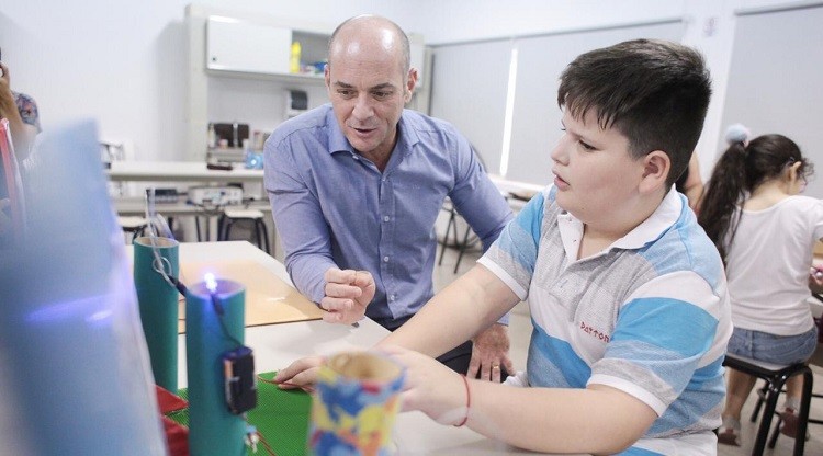 Juan Pablo Lichtmajer, ministro de Educación, visitó el Centro de Innovación donde se desarrollan los talleres de Genios en Acción, una propuesta destinada a favorecer el acercamiento de las familias y chicos, a entornos innovadores y propuestas educativas-recreativas.