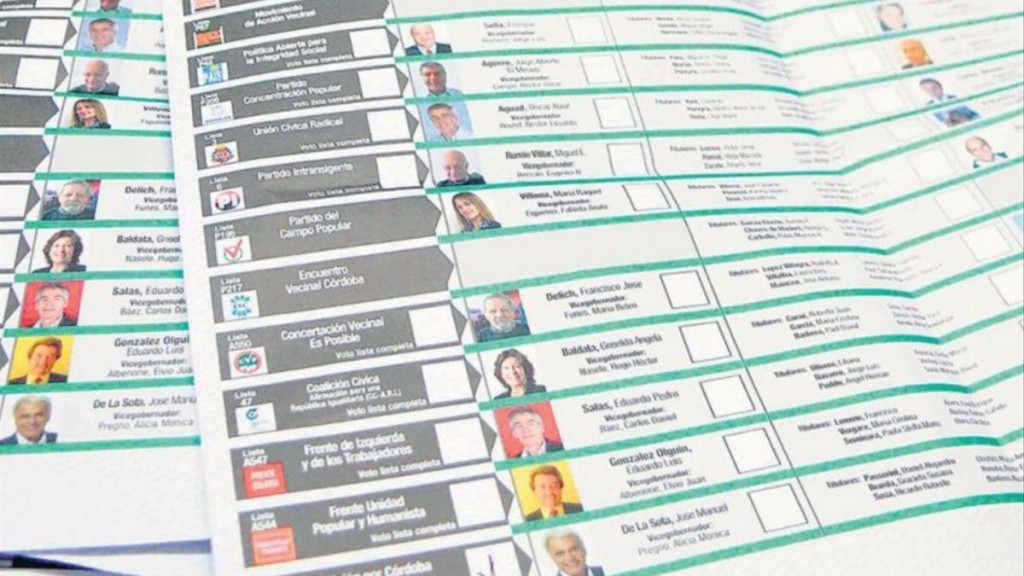 MODELO CÓRDOBA: consiste en una sola boleta con todas las categorías nacionales (presidente y vice, diputados y senadores nacionales y parlamentarios del Mercosur). En los cargos legislativos aparecerán en la papeleta los nombres de los cinco primeros candidatos; los dos primeros llevarán sus respectivas fotos. Ninguna cara de un candidato se repetirá más de una vez en la boleta.