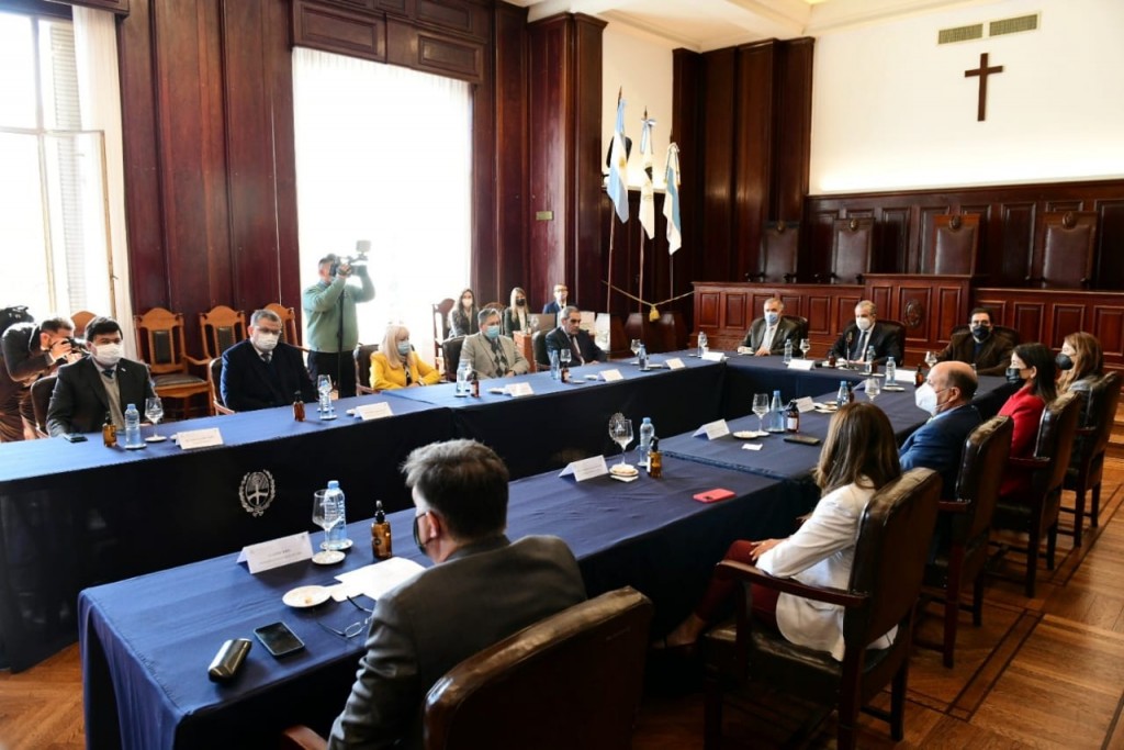 Por su parte, el presidente de la Corte Suprema de Justicia de la Provincia, Daniel Leiva, sostuvo: “En esta reunión, que fue de neto corte institucional, dimos cumplimiento a una carga legal dispuesta en la Ley Provincial 9.188 que dispone de la creación de una Comisión Interpoderes con una conformación donde cada uno de los poderes aporta a sus representantes. Formalizamos y dejamos constituida esa comisión”.