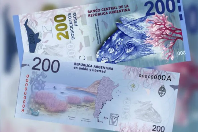 Se trata de unos billetes que poseen la imagen de la Ballena Franca Austral y presentan el número de serie cortado en la impresión, en vez de figurar completo como en realidad debería ser.