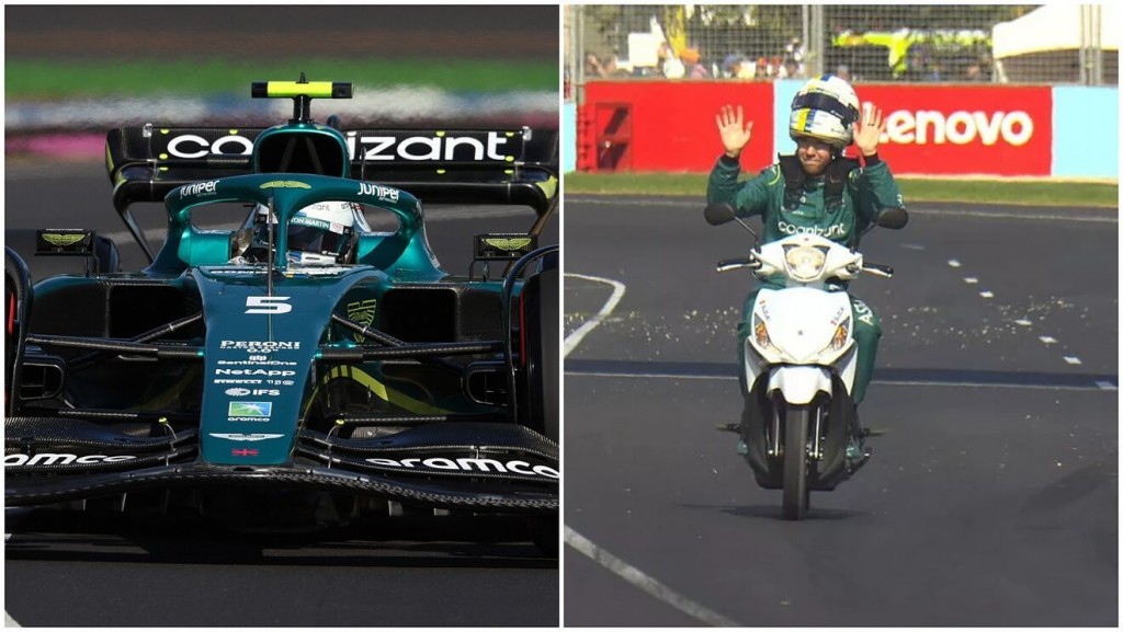 El mal fin de semana de Vettel en Australia ya empezó el viernes. El piloto se subió a una moto y dio una vuelta al circuito. No solo eso está prohibido, si no que además iba saludando a todos los aficionados, soltando así la mano del manillar, y tenía el caso a medio poner.