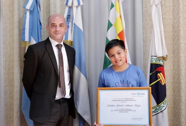 El ministro de Educación, Juan Pablo Lichtmajer, recibió en su despacho de Casa de Gobierno a Lautaro Leonel Ademar Rojas junto a su familia, para distinguirlo como Orgullo Tucumano por su trayectoria en el ajedrez.