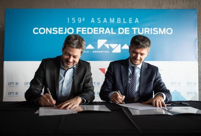 El ministro de Turismo y Deportes, Matías Lammens y el presidente de Tucumán Turismo, Sebastián Giobellina, firmaron un convenio para destinar los fondos del Plan 50 Destinos a la remodelación del alojamiento del sur tucumano.