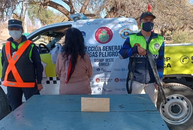 En un puesto de control ubicado en la ruta 40, en Colalao del Valle, en el marco del Operativo Lapacho, personal de la Dirección de Drogas Peligrosas (Didrop) Oeste secuestró este jueves diez gramos de marihuana que traía entre sus pertenencias una mujer que venía de acompañante en un automóvil marca Peugeot 504 , conducido por un hombre. Ambos, oriundos de Cafayate, Salta, se dirigían a la provincia de Mendoza.