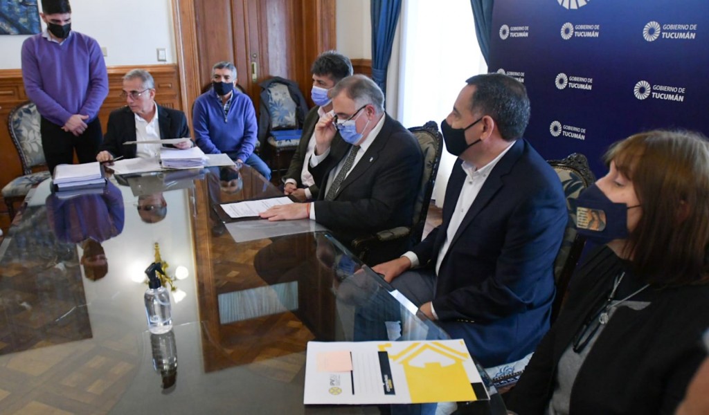 Junto al vicepresidente de la Legislatura, Regino Amado; los ministros de Obras y Servicios Públicos, Fabián Soria; y del Interior, Miguel Acevedo; y la interventora del Instituto Provincial de Vivienda y Desarrollo Urbano (IPVyDU), Nora Belloni; el Gobernador remarcó: “Le ponemos énfasis a la construcción de vivienda porque esto tiene un efecto multiplicador. Son recursos nacionales que bajan a Tucumán, recirculan en la provincia y dinamizar la economía”.