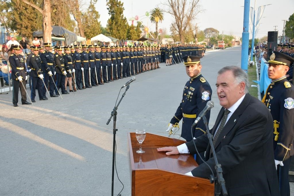 El gobernador, Osvaldo Jaldo, participó hoy en la ciudad de Simoca del acto de jura de cadetes de tercer año de la Escuela de Policía General José de San Martín.