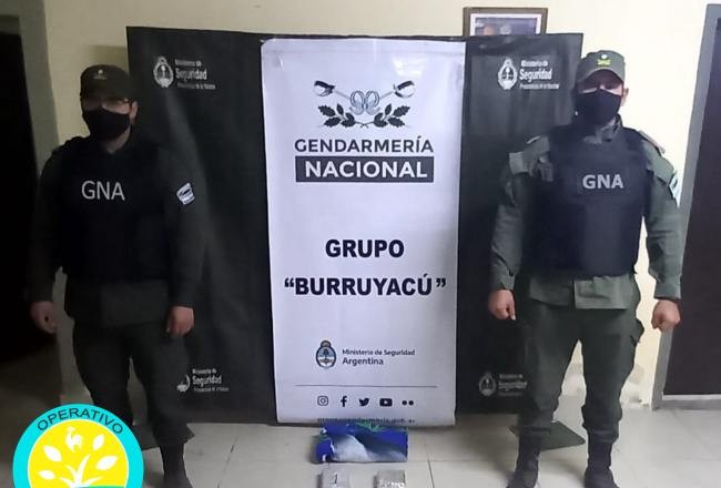 Mientras personal de gendarmería del Escuadrón 55 implementaba controles, mediante un operativo cerrojo, detuvieron la marcha de un colectivo que trasladaba a 43 pasajeros. Si bien el procedimiento en el que se efectuó el control documentológico se desarrolló con normalidad; cuando inició el registro físico, los gendarmes encontraron que disimulados entre dos mantas se hallaba una bolsa de nylon que contenía dos paquetes envueltos en papel metalizado. Al consultar ningún pasajero adujo ser el propietario.