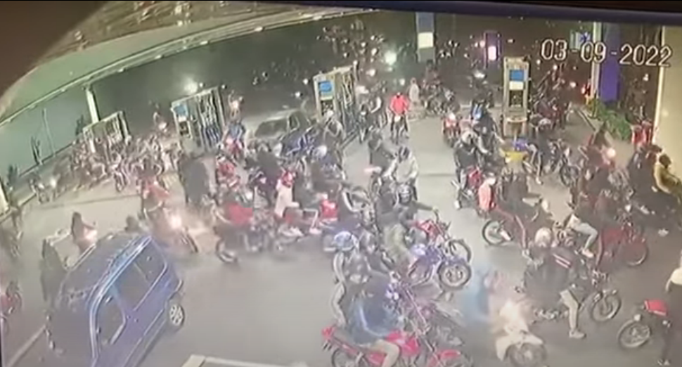 En las imágenes también se puede ver que mientras la mayoría de los motociclistas robaba el combustible, algunos se paseaban a pie por el playón, otros entraban al kiosco y los más atrevidos se divertían haciendo piruetas en una sola rueda o circulando a todo velocidad.