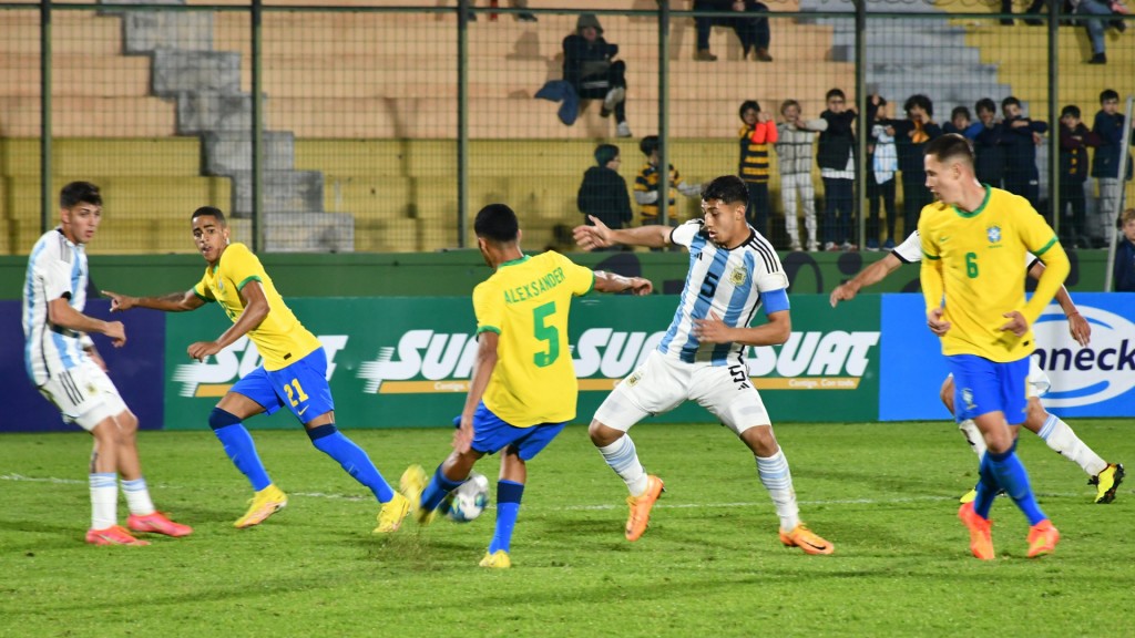 Por ejemplo el capitán del equipo, el lateral derecho Agustín Giay no fue cedido por San Lorenzo, y justamente su reemplazante, Ulises Ciccioli, de Rosario Central, fue el que abrió el marcador para el equipo argentino en la etapa inicial, tras una asistencia del futbolista de Huracán Juan Gauto. Sin embargo, inmediatamente, los brasileños igualaron a través de Lucas Lopes, y Argentina tuvo la oportunidad de ponerse otra vez en ventaja sobre el epílogo de esa etapa inicial a través de Lucas Besozzi, pero el arquero Mycael Pontes obturó su disparo final.