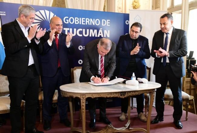 El gobernador, Osvaldo Jaldo, junto el jefe de Gabinete de la Nación, Juan Manzur, y al ministro de Desarrollo Territorial y Hábitat de la Nación, Jorge Ferraresi, encabezaron la firma de actas para la adjudicación y contratación de obras de la construcción de viviendas en la capital tucumana, esta mañana, en el Salón Blanco de la Casa de Gobierno. El proyecto del nuevo emprendimiento habitacional contará con 1.659 viviendas, 1.491 lotes con servicios y 50 locales comerciales.