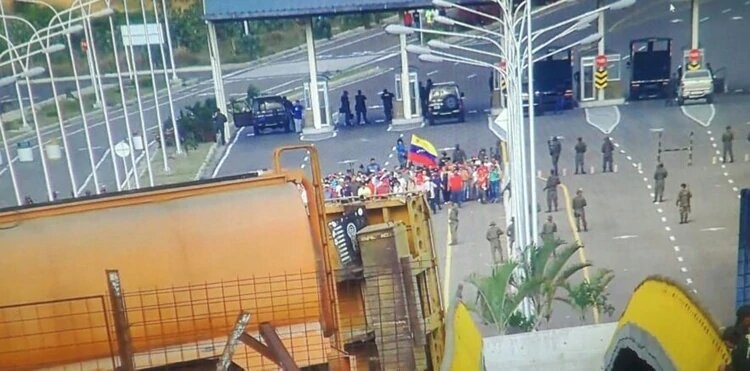Militares venezolanos reforzaron el bloqueo de un puente fronterizo con Colombia, en medio de la pugna entre el gobierno de Nicolás Maduro y el opositor Juan Guaidó por el paso de ayuda humanitaria ante la escasez de medicinas y alimentos.