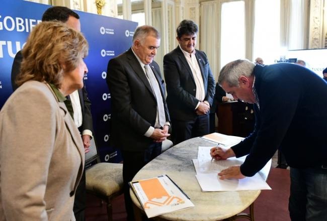 El gobernador, Osvaldo Jaldo, encabezó la firma de convenios del programa “Provisión de materiales PRO. MAT", basado en la autoconstrucción asistida y participativa de viviendas que fomenta la ayuda mutua, con la finalidad de mejorar el habitat y la calidad de vida de la población en 20 comunas y un municipio donde son beneficiadas 147 familias con una inversión 290 millones de pesos. El acto se realizó esta mañana, en el Salón Blanco de la Casa de Gobierno.