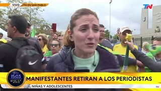 La periodista no pudo terminar su transmisión desde las manifestaciones ya que los simpatizantes de Bolsonaro exigieron que se fuera