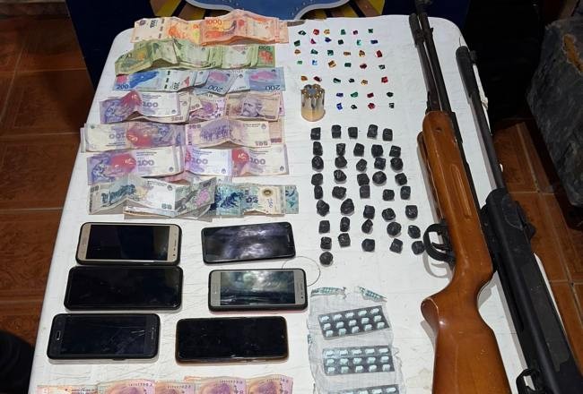 La cantidad y el resto de los elementos secuestrados; entre ellos 10 teléfonos celulares de distintas marcas, papel glasé, tizas y tabletas de psicofármacos; permiten suponer que al menos en uno de estos lugares se comercializaban estupefacientes. Además, se produjo la detención de una mujer de 57 años que luego fue trasladada hasta la dependencia policial.