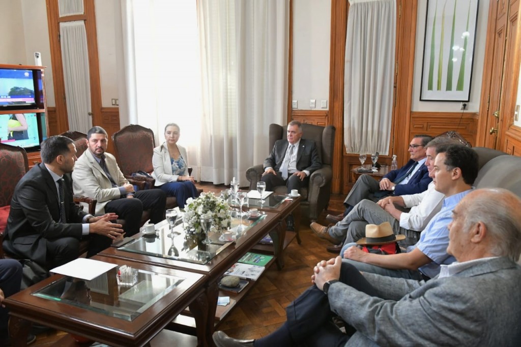El gobernador, Osvaldo Jaldo, se reunió en Casa de Gobierno con el ministro de Desarrollo Productivo, Álvaro Simón Padrós y miembros del CAF - Banco de desarrollo de América Latina para analizar inversiones para proyecto del Centro Multimodal de Cargas en Tucumán.