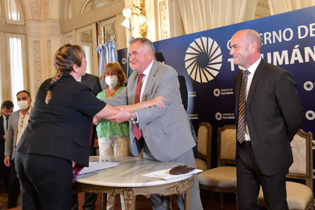 Por otro lado, la Provincia se comprometió a otorgar aporte estatal al Instituto Privado Soem Capital Tucumán, establecimiento educativo incorporado a la enseñanza oficial. La rúbrica fue realizada por el Gobernador y el secretario general del Soem, Osvaldo Javier Acosta.