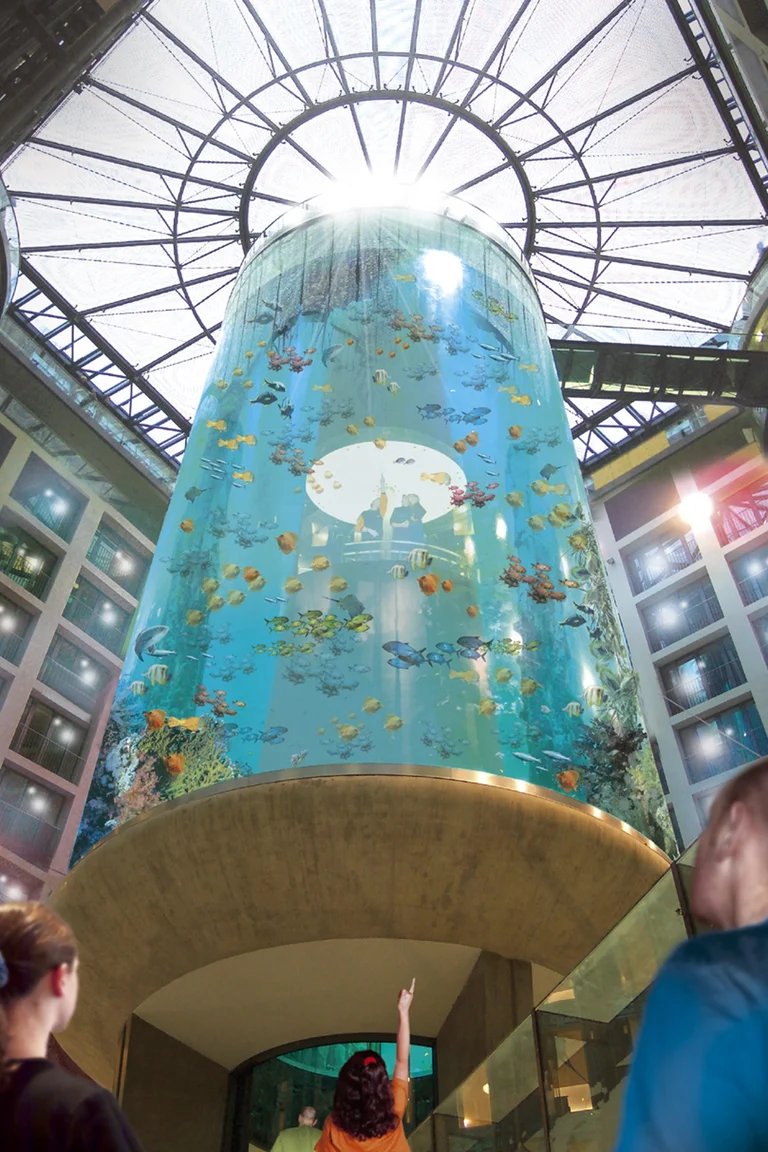 El AquaDom, el acuario cilíndrico más grande del mundo y ubicado en el hotel Radisson Collection de Berlín, reventó esta mañana aparentemente por deterioro del material y derramó un millón de litros de agua de su interior, además de 1.500 peces tropicales.