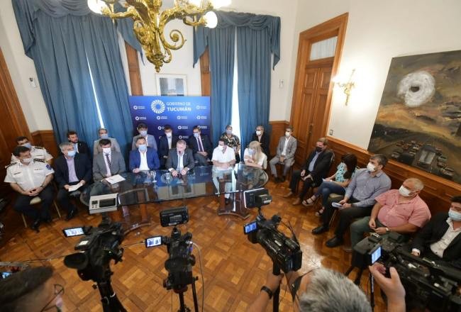 Durante la conferencia de prensa estuvieron presentes: el vicepresidente primero de la Legislatura, Regino Amado; la diputada nacional Rossana Chahla; los ministros Fabián Soria (Obras y Servicios Públicos), Luis Medina Ruíz (Salud Pública), Miguel Acevedo (Interior), Álvaro Simón Padrós (Desarrollo Productivo), Lorena Málaga (Desarrollo Social) y Eduardo Garvich (Economía); el fiscal de Estado, Federico Nazur; el subsecretario general de la Gobernación, Pedro Sandilli; el presidente del Ente Tucumán Turismo, Sebastián Giobellina; el jefe de Policía de Tucumán, Julio Fernández; el secretario de Seguridad, Luis Ibáñez; y el jefe de Gabinete del Ministerio de Educación, Lucas Orellano.