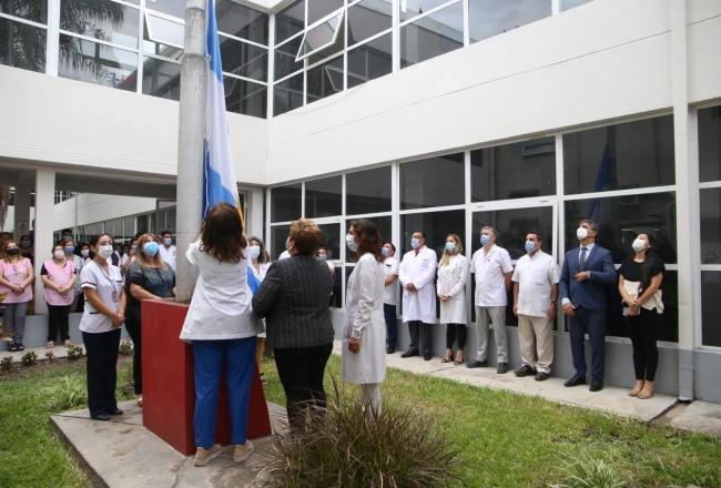 Finalmente, la licenciada en Enfermería Mirta Rivadeneira tuvo el honor de izar la insignia patria y manifestó: “Tengo 38 años de servicio, esto es un honor y un placer porque mis compañeros son mi otra familia y esta es mi segunda casa, que durante tantos años nos cobijó y lo seguirá haciendo en mi caso por un tiempo más. Somos todos un equipo, médicos, enfermeros, camilleros, personal de limpieza, de lavadero, ropería y cocina son todos importantes para brindarnos en pos del único objetivo que tenemos que es la atención cada vez mejor del paciente y de la gente que nos necesita”.