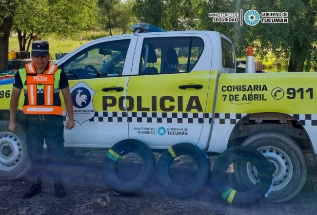 Los efectivos del Destacamento Fronterizo 7 de Abril de la Policía de Tucumán secuestraron este miércoles tres cubiertas de origen extranjero para automóvil por presunta infracción a la Ley de Aduana N° 22.415.