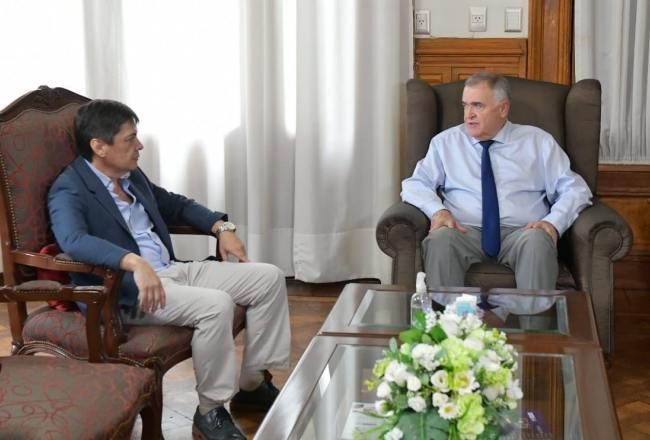 El gobernador, Osvaldo Jaldo, recibió en su despacho de Casa de Gobierno al legislador, Enrique Bethencourt con quién dialogó acerca de las obras que se llevan adelante en las tres comunas que componen el departamento de Trancas y del tratamiento que dará mañana en la Cámara al Decreto de Necesidad y Urgencia para reparar el Dique Celestino Gelsi.