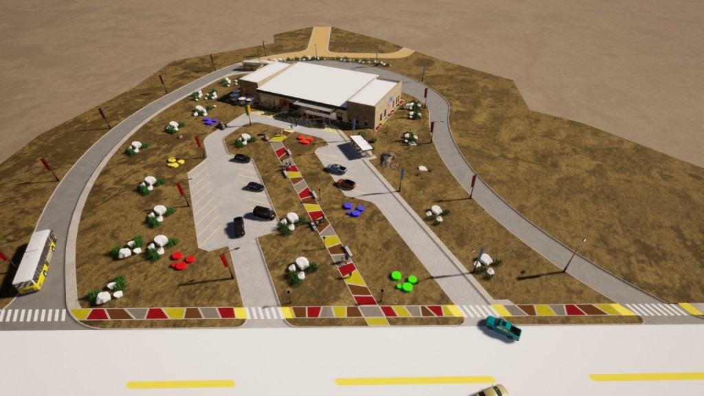La sección de la terminal de ómnibus contará con cuatro andenes con zonas de espera semicubiertos, boleterías, sanitarios, despacho y recepción de encomiendas, puesto de control de ómnibus.