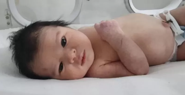 Por ahora, su esposa la está amamantando junto a su propia hija.