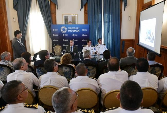 El gobernador, Osvaldo Jaldo, junto al ministro de Seguridad, Eugenio Agüero Gamboa; el jefe y el subjefe de la Policía de Tucumán, Julio Fernández y Sergio Sobrecasa, analizaron en conjunto los resultados hasta el momento de la puesta en vigor de la Ley de Narcomenudeo en la provincia: Fueron detenidas 130 personas en 89 allanamientos y se secuestraron 89 mil “ravioles” de cocaína. La Policía de Tucumán incorporó sus primeros scanners para revisar automóviles y valijas en puestos fronterizos y controles viales. Además, se sumó un perro entrenado para efectuar relevamientos antinarcóticos. Del encuentro fue parte la plana mayor de la fuerza de seguridad provincial.