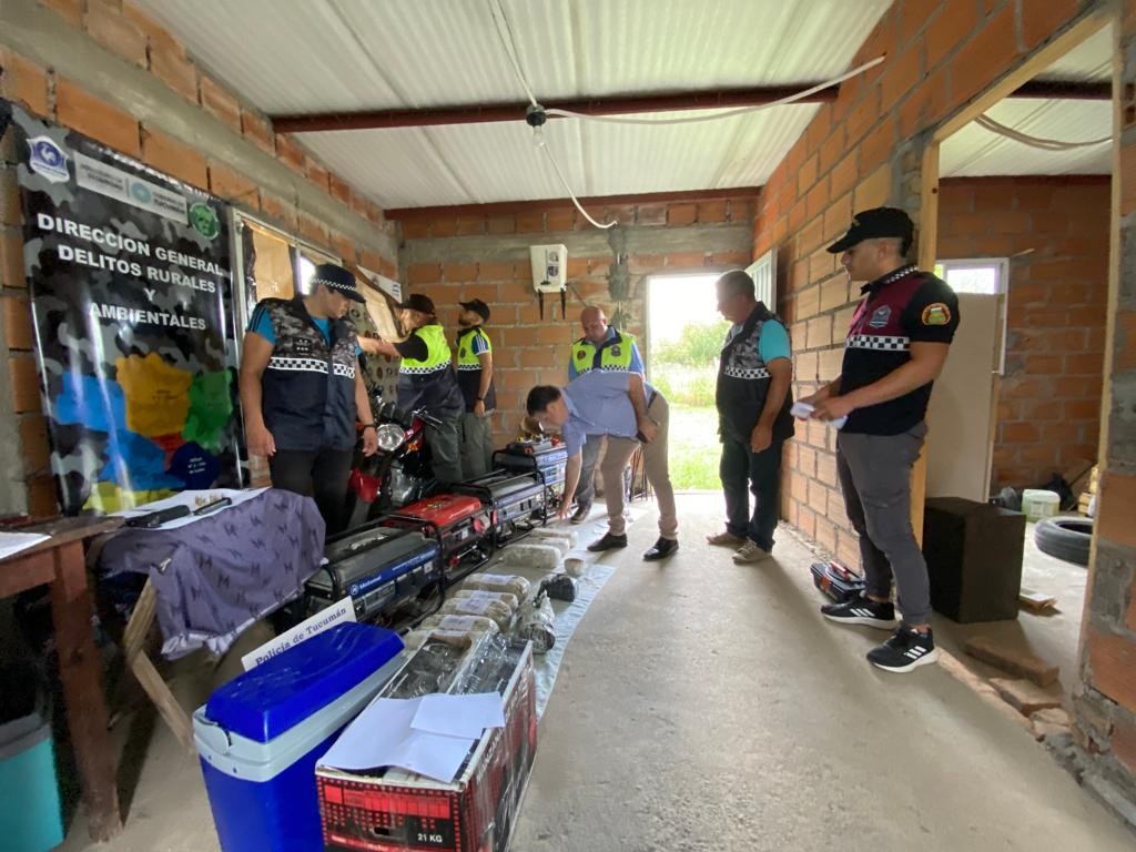 Con el avance de la investigación se logró reunir información acerca del posible paradero de los elementos robados. Siguiendo una pista sobre un hombre que vendía artículos del rubro y ofrecía cubiertas a bajo costo, el fiscal solicitó las medidas que se llevaron a cabo este domingo, con resultado positivo. Las tareas estuvieron coordinadas por el auxiliar de fiscal Facundo González, quien señaló que en el lugar se hallaron varios elementos que coinciden con los objetos denunciados. Fuentes del MPF indicaron que se procedió al secuestro de 4 grupos electrógenos, cubiertas de motovehículos, una motocicleta y automóvil ( ambos sin documentación), una pistola 9 milímetros y estupefacientes. Además, se procedió a la aprehensión de un sujeto de 21 años.