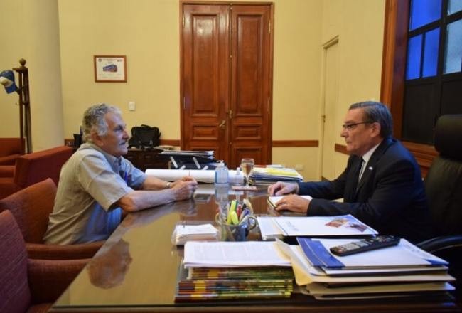 El ministro de Desarrollo Productivo, Álvaro Simón Padrós, recibió al asesor del Directorio de la Estación Experimental Agroindustrial Obispo Colombres, Jorge Scandaliaris, con el objetivo de profundizar sobre la situación actual que viven los productores azucareros de la provincia.