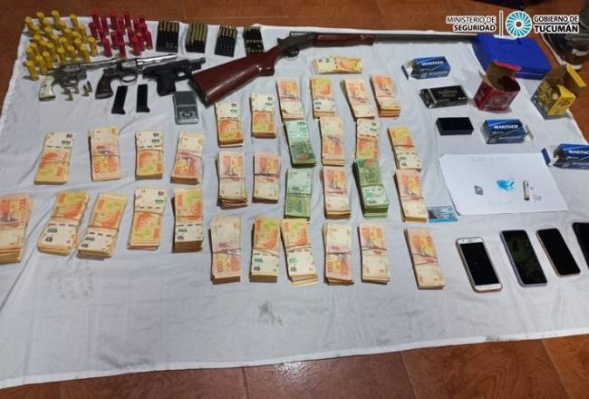 Los investigadores hallaron cuatro armas de fuego, entre ellas una escopeta, y más de 150 municiones de diverso calibre, estos elementos fueron secuestrados juntamente con dos balanzas de precisión, cinco celulares y la suma de $3.026.000.