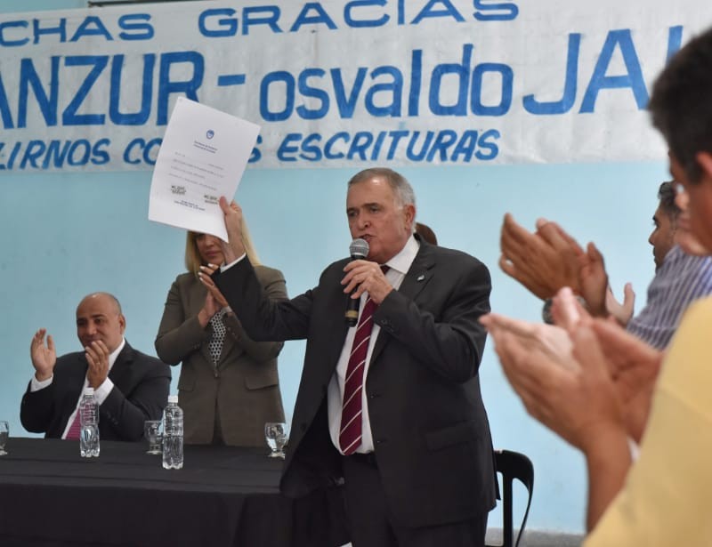 Manzur en su discurso destacó: “muchos de los vecinos beneficiados viven en este barrio hace 20, 30 y más años. Había que formalizar esto como corresponde. Estas escrituras son de ahora y para siempre. Hoy es un día en el que Tucumán da un pasito más hacia adelante”.
